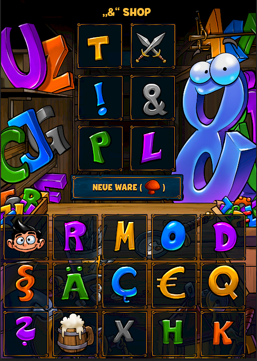 V obchodě „&“ si můžete kupovat jednotlivá písmena – přesně jako výzbroj. Každé písmeno stojí trochu zlaťáků nebo kombinaci zlaťáků a houbiček. Čím vzácnější písmeno, tím vyšší cena.