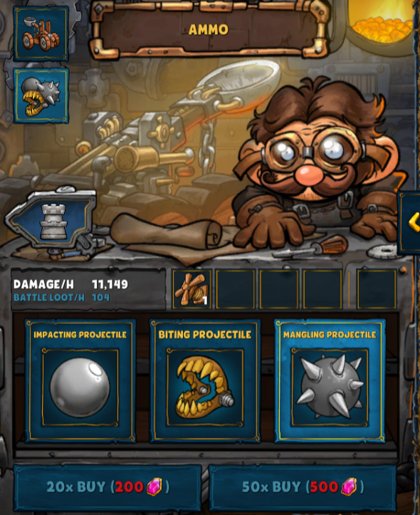 Your catapult now has an extra slot for ammunition. These can be purchased using catalysts and will be used whenever you attack a boss. They provide a direct boost to your damage and come in different versions.